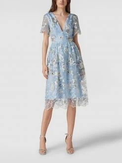 Das Cocktailkleid von Chi Chi London ist aus strapazierfähigem Material gefertigt und tailliert geschnitten. Es kommt mit V-Ausschnitt, Motiv-Stitching und Paillettenbesatz sowie ausgestellter Rockpartie.