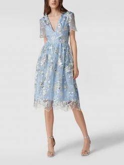 Das Cocktailkleid von Chi Chi London ist aus strapazierfähigem Material gefertigt und tailliert geschnitten. Es kommt mit V-Ausschnitt, Motiv-Stitching und Paillettenbesatz sowie ausgestellter Rockpartie.