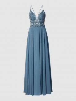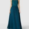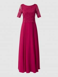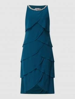 Das Abendkleid von Christian Berg Cocktail ist aus einer leichten Viskosemischung mit Stretch-Anteil gefertigt und tailliert geschnitten. Es zeigt sich im Off-Shoulder-Look mit V-Ausschnitt, kurzen Ärmeln und schimmerndem Muster.