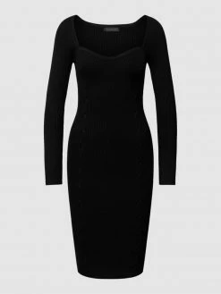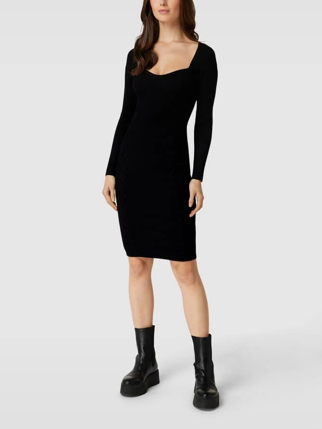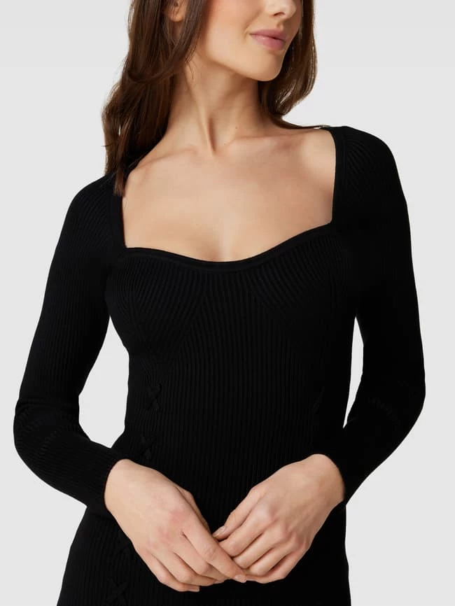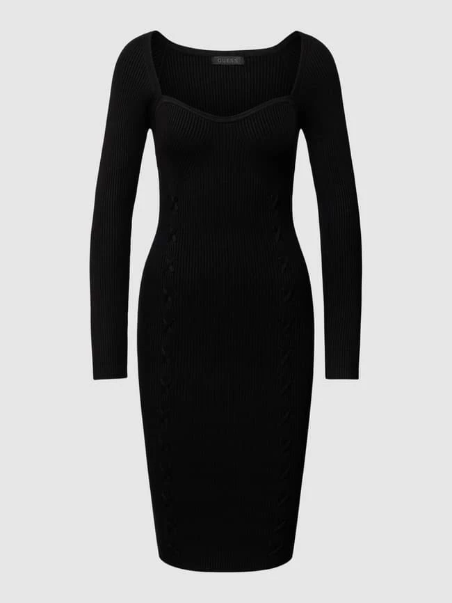Das Kleid von GUESS ist aus einem Viskose-Mix mit Elasthan-Anteil gefertigt und schmal geschnitten. Es kommt in Ripp-Optik mit Applikation und Herz-Ausschnitt.