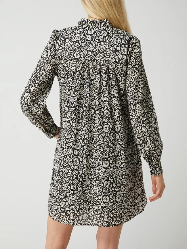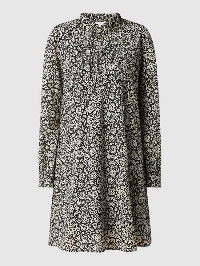 Das Minikleid von Jake*s Casual ist locker geschnitten. Es kommt mit floralem Allover-Muster, V-Ausschnitt mit Schnürung und Biesen.