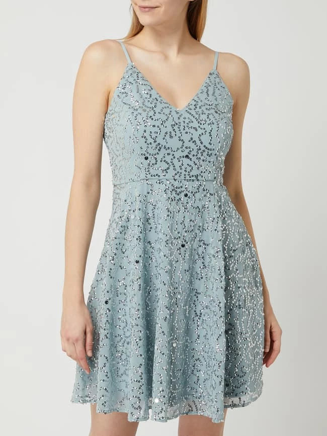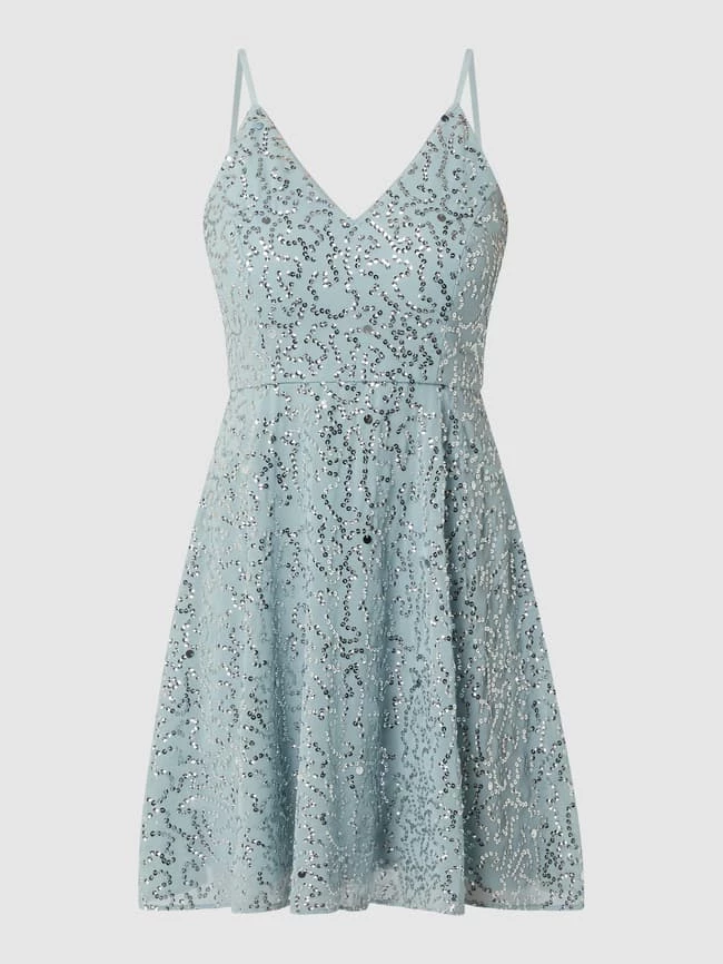 Das Cocktailkleid von Jake*s Cocktail ist aus Chiffon gefertigt und tailliert geschnitten. Es zeigt sich mit Pailletten, Spaghettiträgern und Nahtreißverschluss auf der Rückseite.