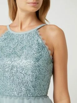Das Cocktailkleid von Jake*Cocktail ist aus Spitze und Chiffon gefertigt. Es kommt in taillierter Passform mit amerikanischem Ausschnitt, schmalen Trägern und Pailletten.