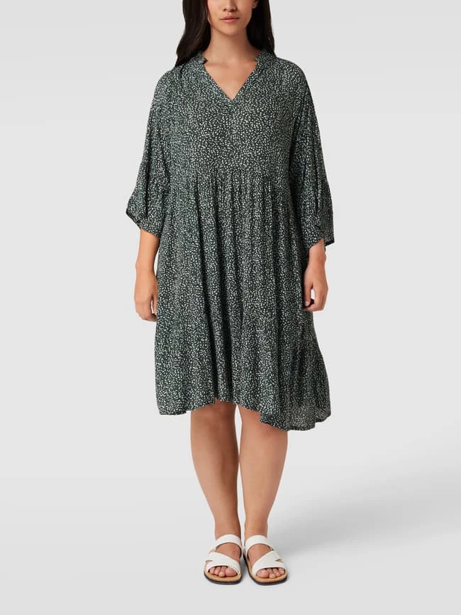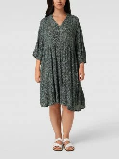 Schlussverkauf ⭐ KAFFE Curve PLUS SIZE Midikleid Mit Allover-Muster Modell ‘Cherana’ – Schilf ❤️
