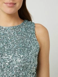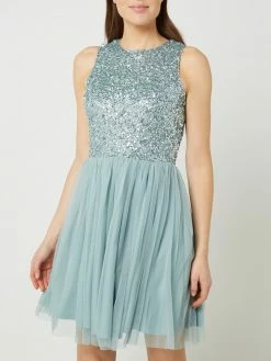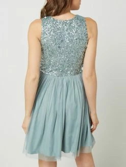 Das Cocktailkleid von Lace & Beads ist aus Tüll gefertigt und tailliert geschnitten. Es zeigt sich mit Pailletten, ausgestelltem Rockteil und Raffungen.