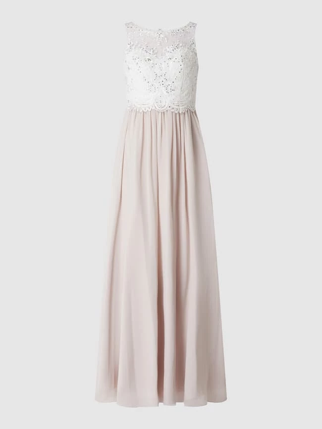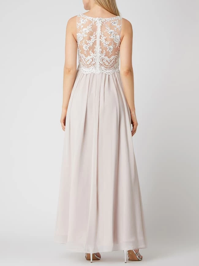 Das Abendkleid von LAONA ist aus Chiffon gefertigt und kommt in leicht taillierter Passform. Es zeigt sich mit ornamentalen Stickereien, Strasssteinen und Nahtreißverschluss auf der Rückseite.