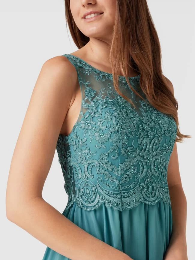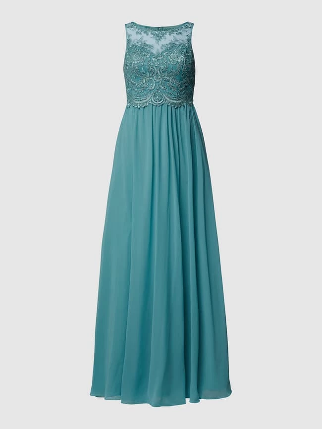 Das Abendkleid von LAONA ist aus strapazierfähigem Material gefertigt und leicht tailliert geschnitten. Es kommt mit Rundhalsausschnitt, Strasssteinbesatz, rückseitigem Reißverschluss und floraler Spitze.