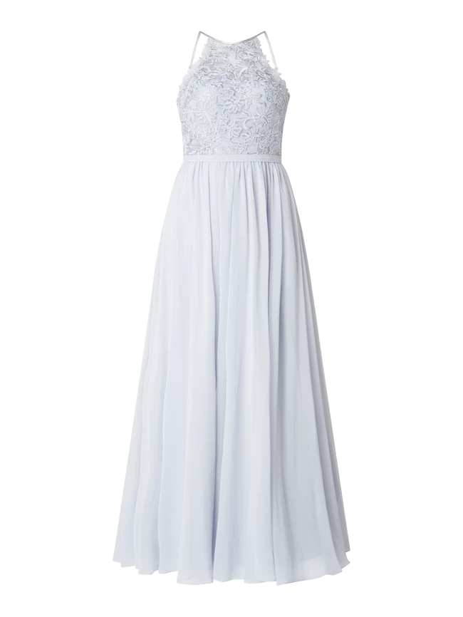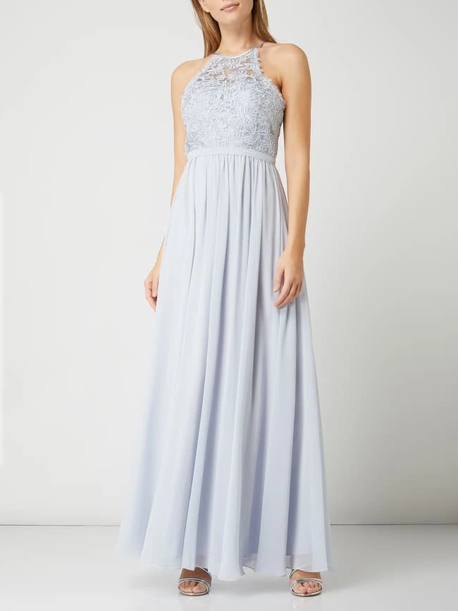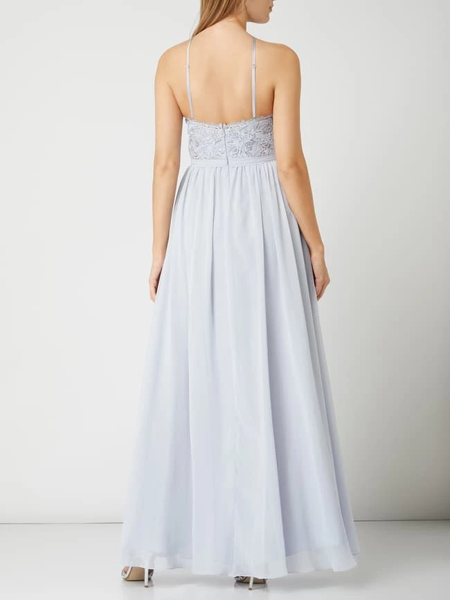 Das Abendkleid von LAONA zeigt sich mit einem Oberteil aus Tüll. Es ist tailliert geschnitten und kommt im eleganten Design mit Zierborten, Stickereien und locker fallendem Rockteil aus Chiffon.