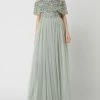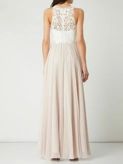 Für einen effektvollen Glamour-Look: das Abendkleid von LAONA. Das Oberteil aus Mesh zeigt sich mit funkelndem Pailletten-Besatz und klassischem Rundhalsausschnitt. Der ausgestellte Rockteil aus Chiffon kommt mit feinen Raffungen.