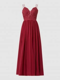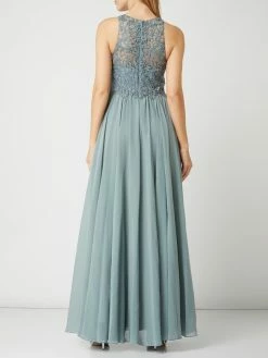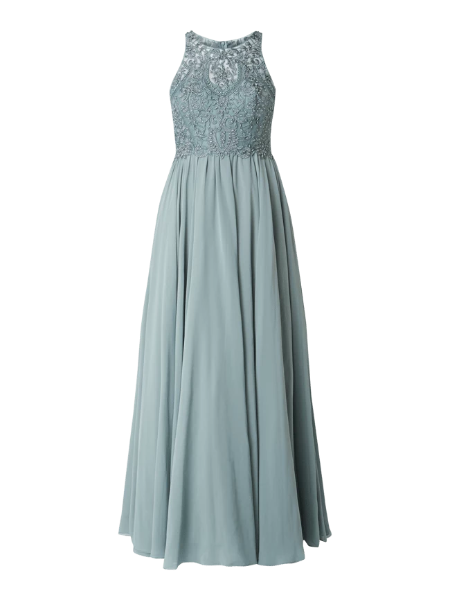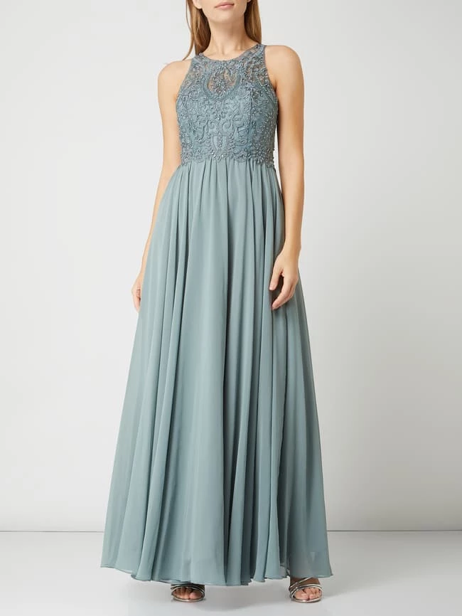 Für einen effektvollen Glamour-Look: das Abendkleid von LAONA. Das Oberteil aus Mesh zeigt sich mit funkelndem Pailletten-Besatz und klassischem Rundhalsausschnitt. Der ausgestellte Rockteil aus Chiffon kommt mit feinen Raffungen.