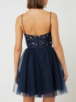Das Cocktailkleid von LAONA ist Mesh gefertigt und tailliert geschnitten. Es kommt mit Pailletten, Ziersteinen und ausgestelltem Rockteil.