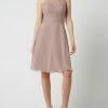 Das Cocktailkleid von LAONA ist aus robustem Material gefertigt und zeigt sich in A-Linie. Es kommt mit Spaghettiträgern, Herz-Ausschnitt mit Netz-Einsatz und Pailletten und Zierperlen.