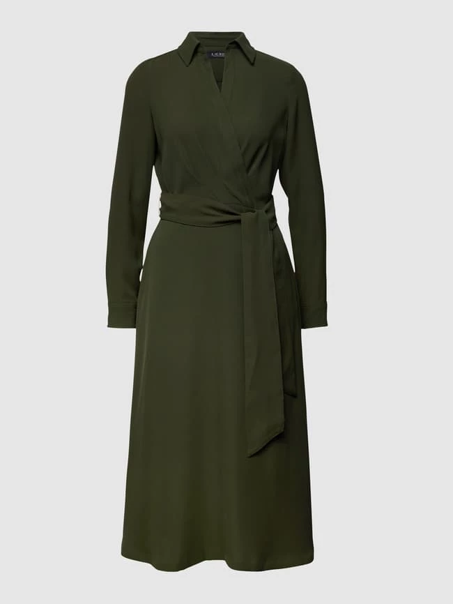 Das Midikleid von Lauren Ralph Lauren ist aus strapazierfähigem Material gefertigt und tailliert geschnitten. Es kommt mit langen Ärmeln, V-Ausschnitt und Umlegekragen.