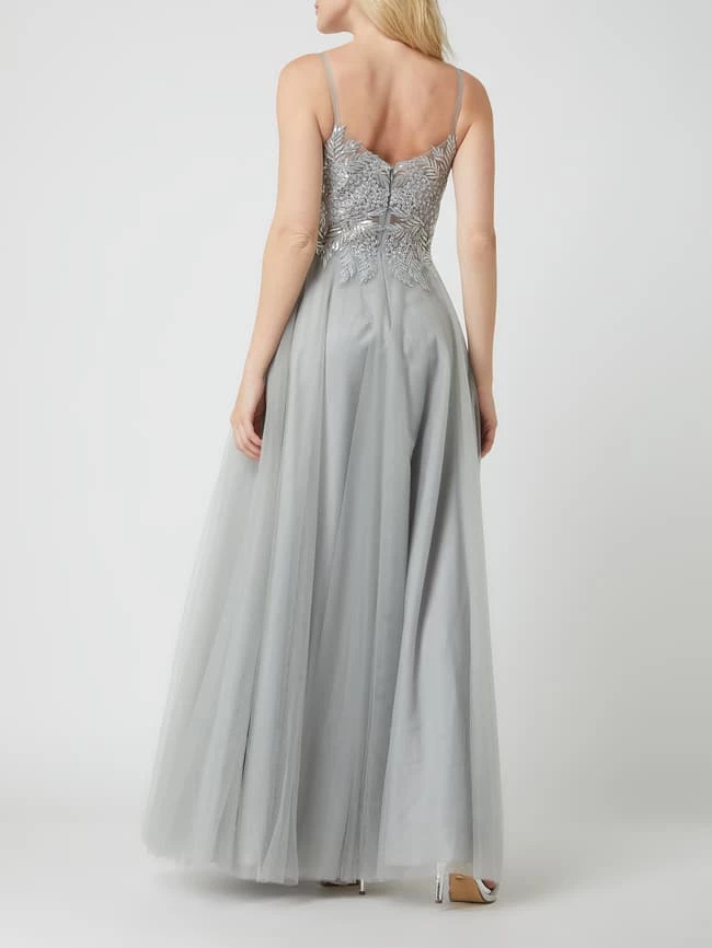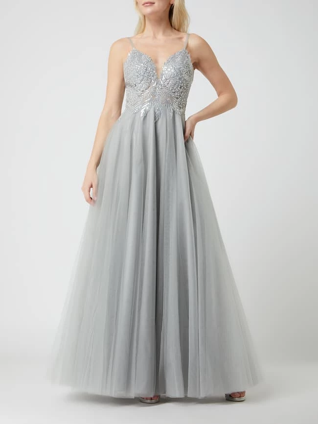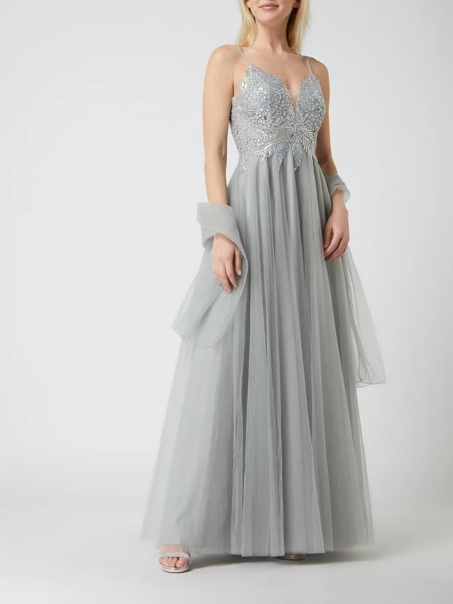 Auslauf ⌛ Luxuar Abendkleid Aus Tüll Mit Pailletten – Silber 💯