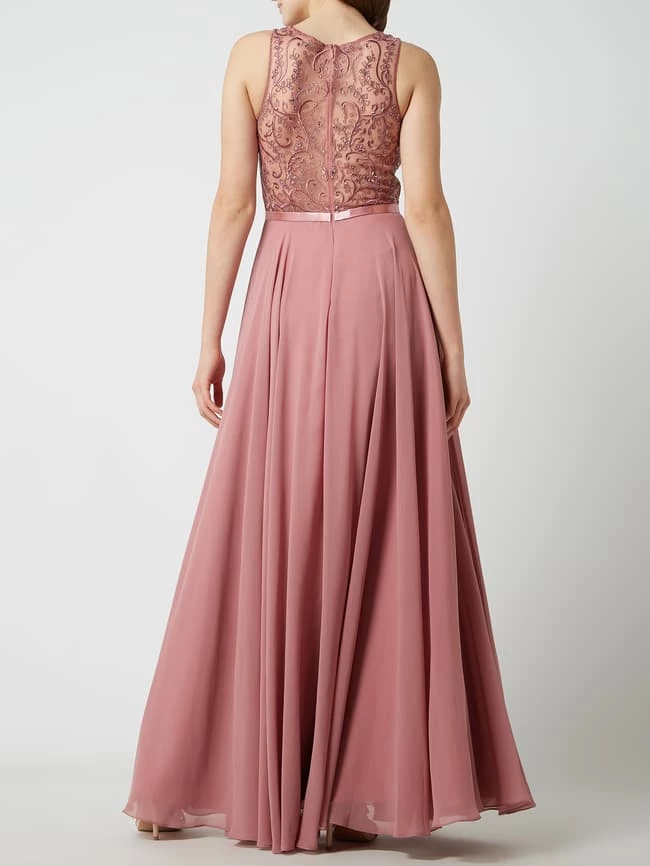 Das Abendkleid von LUXUAR MAGIC NIGHTS ist aus Mesh und Chiffon gefertigt. Es kommt in taillierter Passform mit floraler Stickerei, Ziersteinen und ausgestelltem Rockteil.