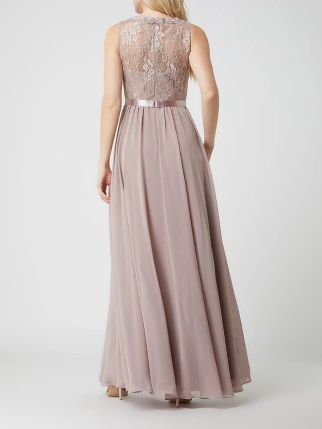 Das Abendkleid von LUXUAR MAGIC NIGHTS ist aus floraler Spitze und Chiffon gefertigt. Es zeigt sich in taillierter Passform mit Zierborte aus Häkelspitze, Taillenpasse und ausgestelltem Rockteil.