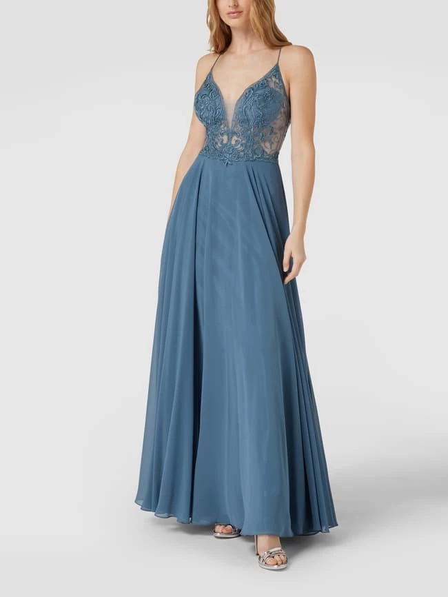 Das Abendkleid von LUXUAR FASHION ist aus strapazierfähigem Material gefertigt und tailliert geschnitten. Es kommt mit semitransparentem Obermaterial, blickdichtem Unterkleid und Zierbesatz.