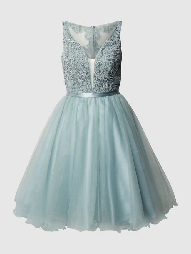 Das Cocktailkleid von LUXUAR FASHION ist aus strapazierfähigem Material gefertigt und tailliert geschnitten. Es zeigt sich mit Herz-Ausschnitt und floralen Stickereien sowie Taillenpasse und Zierperlenbesatz.