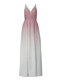 Das Abendkleid von Mascara ist aus leichtem Material gefertigt und tailliert geschnitten. Es zeigt sich im Ombré-Look mit Glitter-Effekt, tiefem Ausschnitt und Mesheinsatz.
