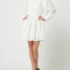 Das Kleid von MONTEGO ist aus einem Baumwoll-Mix mit Viskose-Anteil gefertigt und tailliert geschnitten. Es kommt mit Rundhalsausschnitt und floralen Stickereien.