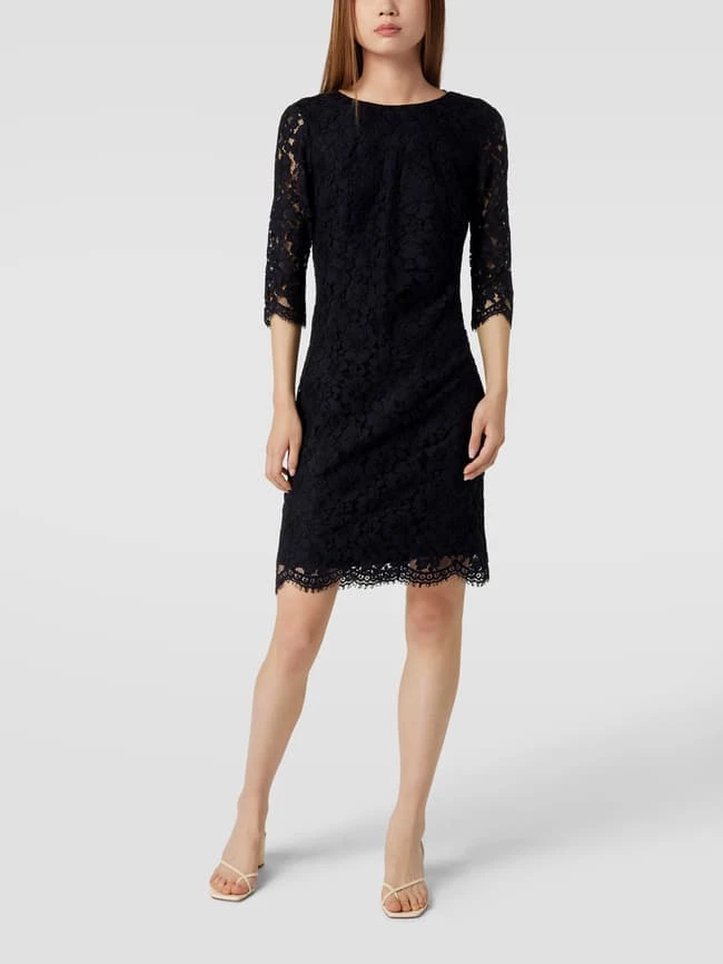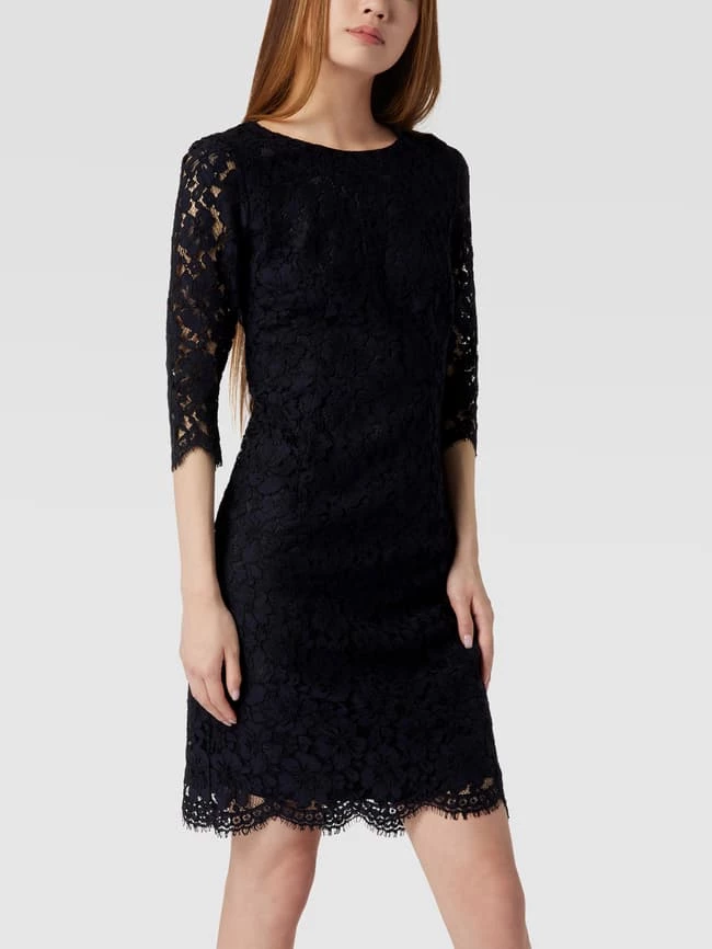 Brandneu 😀 Montego Knielanges Kleid Mit Floralen Stickereien – Marineblau 🔔