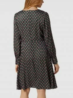 Das Midikleid von MORE & MORE ist aus reiner Viskose gefertigt und tailliert geschnitten. Es kommt mit Allover-Muster, Reißverschluss, V-Ausschnitt sowie breiten Manschetten mit Knopfverschluss.