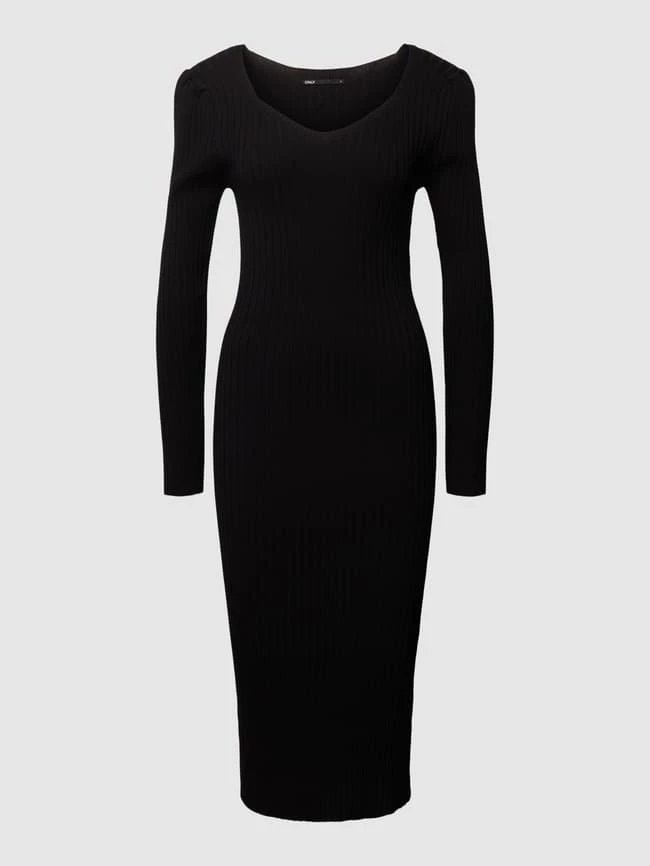 Auslauf 🎉 Only Midikleid In Ripp-Optik Modell ‘RACHELLA’ – Schwarz ⭐