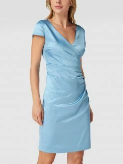 Das Cocktailkleid von Paradi ist aus einem Material-Mix gefertigt und körpernah geschnitten. Es kommt mit Wickel-Optik, V-Ausschnitt und Nahtreißversschluss.
