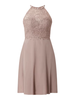 Das Cocktailkleid von Paradi ist aus einem Material-Mix gefertigt und körpernah geschnitten. Es kommt mit Wickel-Optik, V-Ausschnitt und Nahtreißversschluss.
