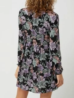 Das Kleid von REVIEW ist aus reiner Viskose gefertigt und ausgestellt geschnitten. Es zeigt sich mit floralem Muster, tiefem V-Ausschnitt und Raffungen.