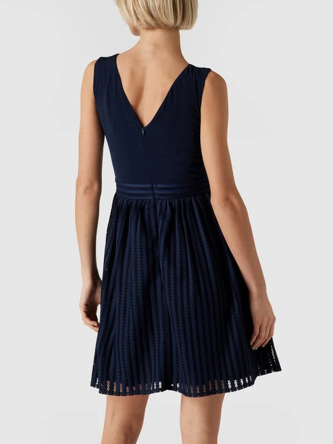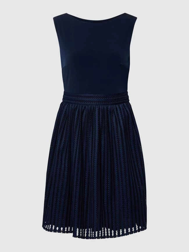 Das Cocktailkleid von SWING ist aus strapazierfähigem Material gefertigt und tailliert geschnitten. Es kommt mit Lochstickereien, U-Boot-Ausschnitt und ausgestellter Rockpartie.