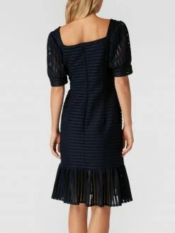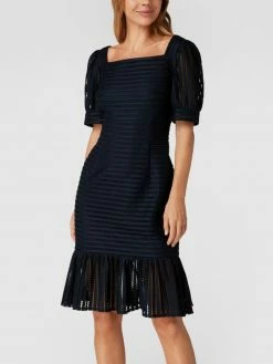 Das Cocktailkleid von SWING ist aus strapazierfähigem Material gefertigt und tailliert geschnitten. Es zeigt sich mit kurzen Ärmeln, Karree-Ausschnitt sowie Lochstickereien.