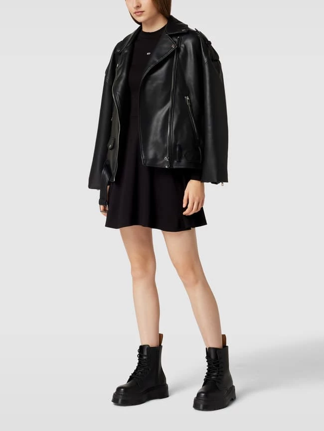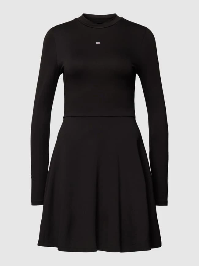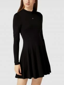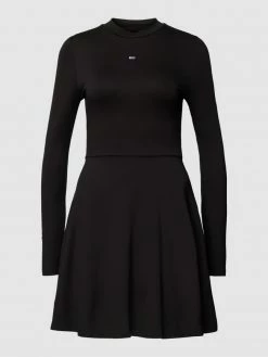 Das Jerseykleid von Tommy Jeans ist aus einem Viskose-Mix mit Stretch-Anteil gefertigt und körpernah geschnitten. Es zeigt sich im unifarbenen Design und kommt mit ausgestelltem Rockteil.