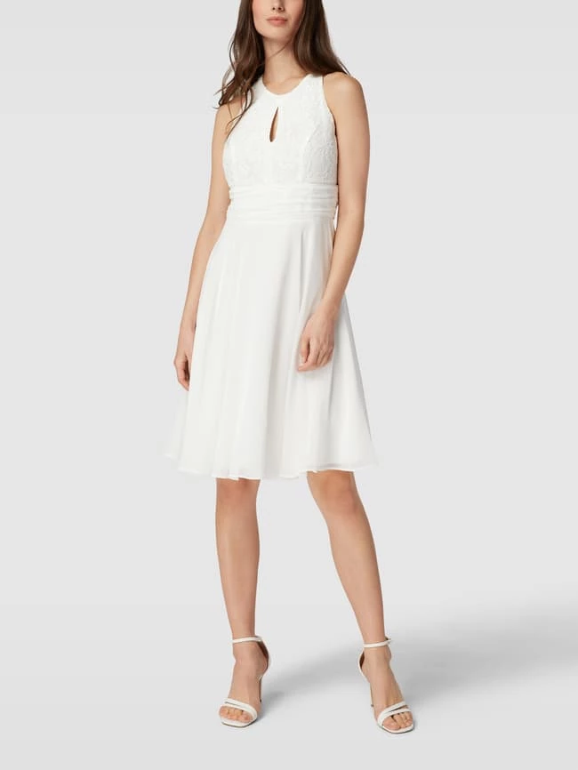 Das Cocktailkleid von VM Vera Mont ist aus einem strapazierfähigen Material gefertigt und im taillierten Schnitt gehalten. Es zeigt sich in unifarbenem Design mit Zierbesatz und Schlüsselloch-Ausschnitt.