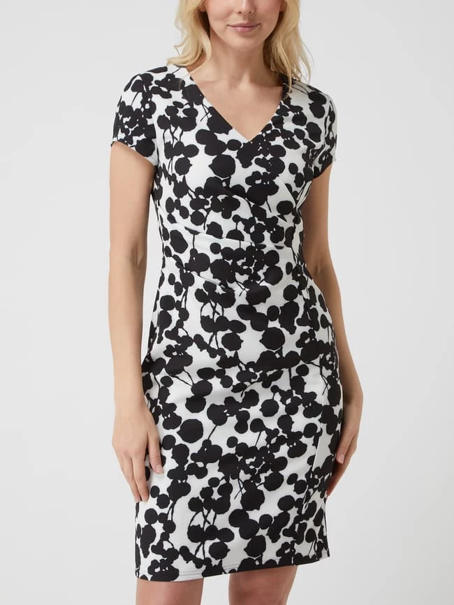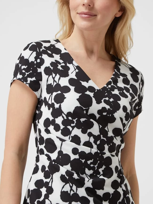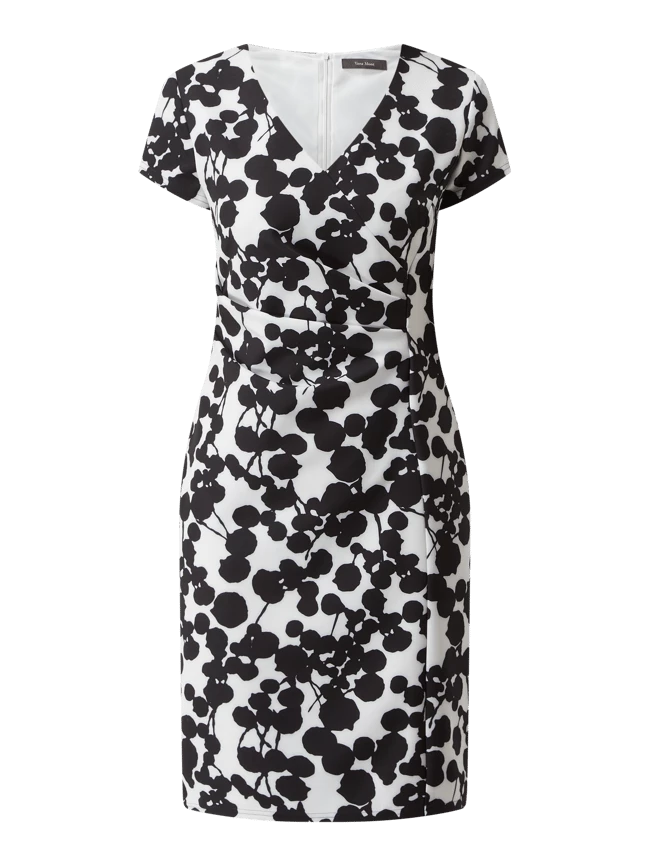 Das Cocktailkleid von Vera Mont ist aus leichtem Material gefertigt. Es kommt in taillierter Passform mit Allover-Muster, V-Ausschnitt in Wickel-Optik und gelegten Falten.