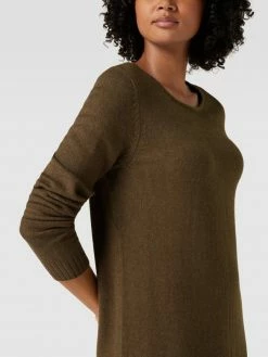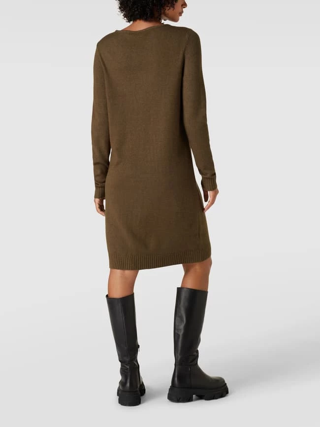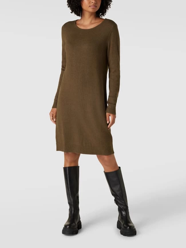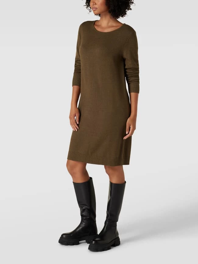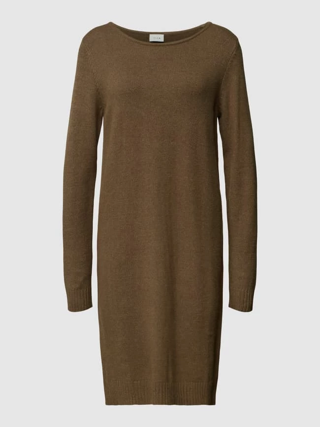 Das Strickkleid von VILA ist aus einem Viskose-Mix gefertigt und in lockerer Passform gehalten. Es zeigt sich knielang mit U-Boot-Ausschnitt und gerippten Abschlüssen.